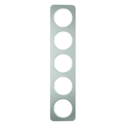 Rahmen 5fach R.1 Edelstahl/polarwei§. Abdeckrahmen fŸr senkrechte und waagerechte Montage, (B x H) 81,2 x 365,2 mm. FŸr Verwendung von polarwei§en ZentralstŸcken. Unterputz-Installation, Fl_chen-/Designprogramm, 5-fach. Material: Edelstahl Rostfrei und Kunststoff, Thermoplast, bruchsicher, halogenfrei.