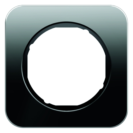 Rahmen 1fach R.1 Glas, schwarz. Abdeckrahmen fŸr senkrechte und waagerechte Montage, (B x H) 81,2 x 81,2 mm. FŸr Verwendung von ZentralstŸcken schwarz. Unterputz-Installation, Fl_chen-/Designprogramm, 1-fach. Material: thermisch geh_rtetes Glas und Kunststoff, Thermoplast, bruchsicher, halogenfrei.
