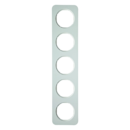 Rahmen 5fach R.1 polarwei§, gl_nzend. Abdeckrahmen fŸr senkrechte und waagerechte Montage, (B x H) 80,7 x 364,7 mm. FŸr Verwendung von polarwei§en ZentralstŸcken. Unterputz-Installation, Fl_chen-/Designprogramm, 5-fach. Material: Kunststoff, Thermoplast, bruchsicher, halogenfrei.