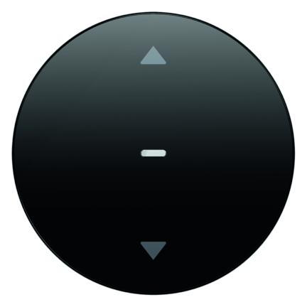 Jalousie-Taste R.1/R.3 schwarz, glänzend. Jalousie-Taste niedriger Eigenenergiebedarf, Memory-Funktion zur automatischen Ausführung gelernter Auf- und Abfahrzeiten mit Position, Party-Funktion, keine Ausführung von Automatik-, Funk und Nebenstellenbefehlen (Aussperrsicherung), LED-Aufsatz-/Einsatz-Kompatiblitäts-Anzeige, mit Status-LED für Memory- und Party-Funktion rot/orange, mit Demontageschutz, mit Aufdruck Symbol Pfeile. Unterputz-Installation, Flächen-/Designprogramm. Material: Kunststoff, Thermoplast, halogenfrei.