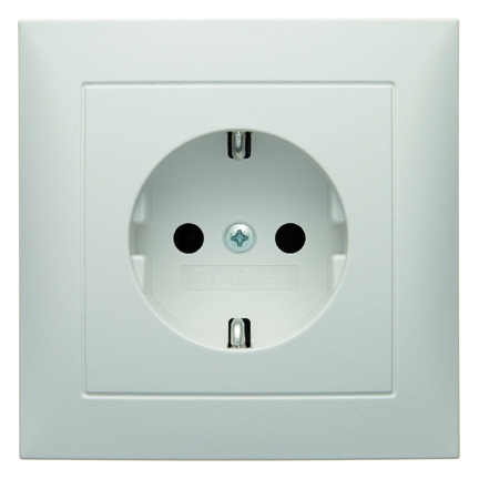 Steckdose SCHUKO mit Abdeckplatte S.1 polarwei§, matt. Steckdose SCHUKO¨ mit Abdeckplatte, mit Steckklemmen nach VDE 0620 als Verbindungsklemmen ausgefŸhrt und genehmigt, mit einteiligem ErdungsbŸgel. Unterputz-Installation, Standardprogramm. Material: Kunststoff, Thermoplast, bruchsicher, halogenfrei.