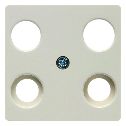 Zentralplatte fŸr Antennen-Steckdose 4Loch Zentralplattensystem wei§, gl_nzend. Zentralplatte fŸr 4-Loch Antennen-Steckdosen, mit 2 zus_tzlichen SAT-Ausg_ngen (F-Buchsen), nur mit Zwischenringen des Programms zu verwenden. Standard-/Fl_chen-/Design-/Feuchtraumprogramm. Material: Kunststoff, Thermoplast, bruchsicher, halogenfrei.