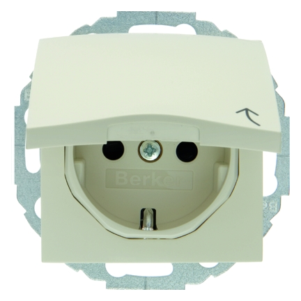 Steckdose SCHUKO m. Klappdeckel u. erh_htem BerŸhrungsschutz S.1 wei§, gl_nzend. Steckdose SCHUKO¨ verdrehbar mit Klappdeckel, arretiert im ge_ffneten Zustand. FŸr senkrechte und waagerechte Montage, mit Aufdruck, mit erh_htem BerŸhrungsschutz, Steckdose in 45 Grad Schritten verdrehbar, mit Steckklemmen nach VDE 0620 als Verbindungsklemmen ausgefŸhrt und genehmigt, mit einteiligem ErdungsbŸgel. Unterputz-Installation, Standardprogramm. Material: Kunststoff, Duroplast, halogenfrei.