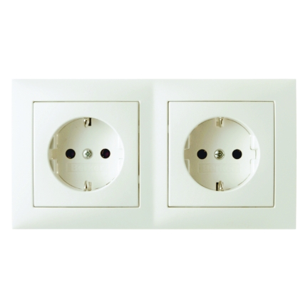 Steckdosen-Kombination SCHUKO 2fach mit Rahmen S.1 wei§, gl_nzend. Steckdose SCHUKO¨ 2-fach Kombination mit Rahmen, zur Installation in Kabelkanal-Einbaudosen und in handelsŸbliche 2-fach Hohlwanddosen, sowie in 2-fach Up Dosen, ohne Spreizkrallen, 2 x 1-fach, durchverdrahtet, mit Steckklemmen.