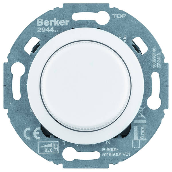 Universal-Drehdimmer mit ZentralstŸck (R, L, C, LED), Serie 1930/Glas, pw. gl. Universal-Drehdimmer mit ZentralstŸck mit Nebenstelleneingang fŸr Taster (Schlie§er) mit Einl_chenbedienung, SpannungsprŸfung ohne Ausbau m_glich, Phasenan-/Phasenabschnitt oder LED-Phasenanschnitt je nach Lastart (selbstlernend). Mit Helligkeitsspeicher, lampenschonender Softanlauf, Inkrementalgeber, kurzschlussfest und Ÿberlastsicher (elektronische Sicherung), Schraubklemmen. Hinweis: Keine induktiven und kapazitiven Lasten gemeinsam anschlie§en.