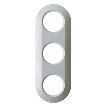 Rahmen 3fach Serie 1930 polarweiß, glänzend. Abdeckrahmen für senkrechte und waagerechte Montage. Unterputz-Installation aller Up-Einsätze mit Zentralstück aus Sonderprogramm. Unterputz-Installation, Sonderprogramm, 3-fach. Material: Kunststoff, Duroplast, halogenfrei.