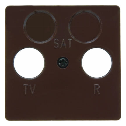 Zentralplatte für Antennen-Steckdose 2Loch Zentralplattensystem braun, glänzend. Zentralplatte für 2-Loch Antennen-Steckdosen, nur mit Zwischenringen des Programms zu verwenden. Unterputz-Installation, Feuchtraumprogramm. Material: Kunststoff, Thermoplast, bruchsicher, halogenfrei.