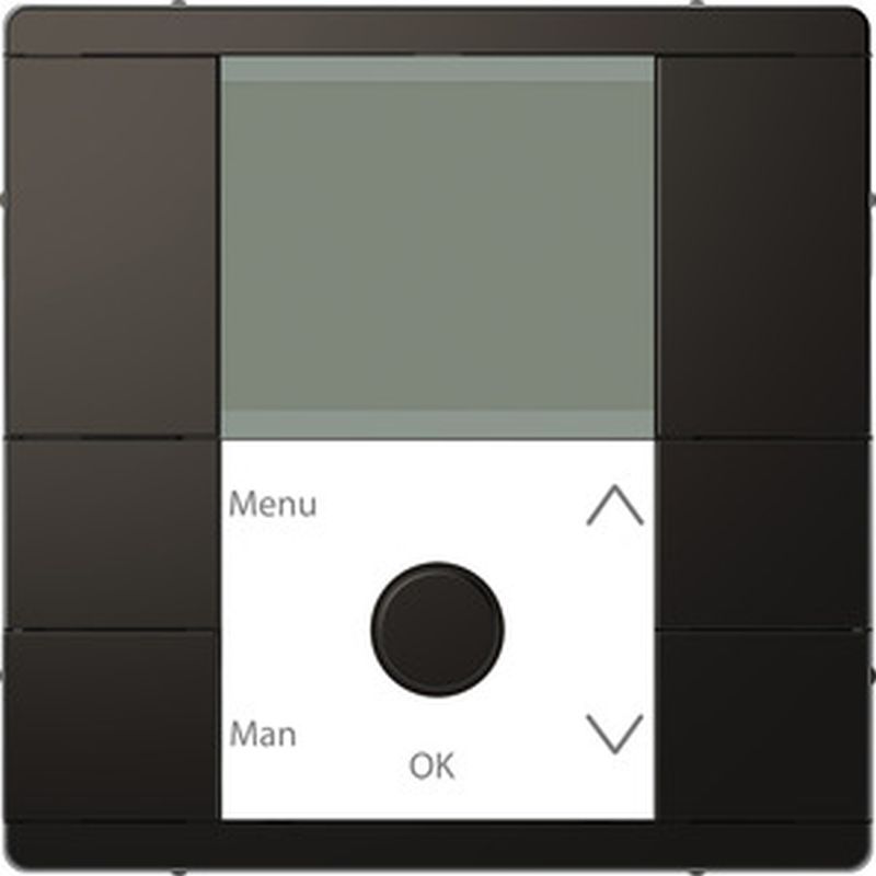 Für System Design. Zum programmierten und zeitabhängigen Schalten von Verbrauchern wie Jalousie-/Rollladenmotorenxx Anzahl der Schaltspiele (hoch/runterfahren): Jalousie-Einsätze: -Pro Kanal: 2 Schaltspiele / Tag. Zentralstellen-Einsatz: -Pro PL-Linie: 2 Schaltspiele / Tag. Funktionen: -Voreingestellte Schaltzeiten (in freien Gruppen). Menügeführte Bedienung: -Gangreserve >6 Stunden. Reset zum Rücksetzen auf Werkseinstellung. Zuschaltbarer Zufallsgenerator (im Bereich 0-30 min). Astrofunktion. Einfache Umschaltung Sommer / Winterzeit. Individuelle Laufzeit programmierbar. Manuelle Betätigung jederzeit möglich. Wählbare Pfeiltastenfunktion für Tasten oder globale Szenen. Helligkeitswerte für Sonnenschutzfunktion einstellbar. Verhalten bei Windalarm einstellbar. Lokal Jalousien/Rollladen steuern: -Jalousiesteuerungs-Einsatz. Global Jalousien/Rollladen steuern, Szenen aufrufen: -Zentralstellen-Einsatz. Bedienelemente: 5 Tasten. Anzeigeelemente: 5 LED, LCD-Anzeige. Anschluss: Modul-Schnittstelle. Zu komplettieren mit: Zentralstellen-Einsatz MEG5190-0000. Elektronik-Schalt-Einsatz MEG5151-0000. Elektronik-Schalt-Einsatz, 2fach MEG5152-0000. Relais-Schalt-Einsatz MEG5161-0000. Relais-Schalt-Einsatz, 2fach MEG5162-0000. Jalousiesteuerungs-Einsatz MEG5165-0000. Universal-Dimmer-Einsatz MEG5171-0000. Universal-Dimmer-Einsatz, 2fach MEG5172-0000. Steuerungs-Einsatz 1-10 V MEG5180-0000. DALI-Steuerungs-Einsatz MEG5185-0000. Material: Thermoplast lackiert. Farbe: Anthrazit.