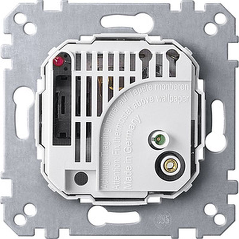 Mit thermischer Rückführung. Vierte Klemme für Nachtabsenkung. Nennstrom Heizen 10 (4) A. Kontakt Öffner. Zu komplettieren mit Zentralplatte für Raumtemperaturregler-Einsatz mit Schalter System M 5348xx, 5361xx, System Fläche 5397xx Lieferumfang Raumtemperaturregler-Einsatz, Putzschutzdeckel und Schrauben. Ausführung AC 230 V.