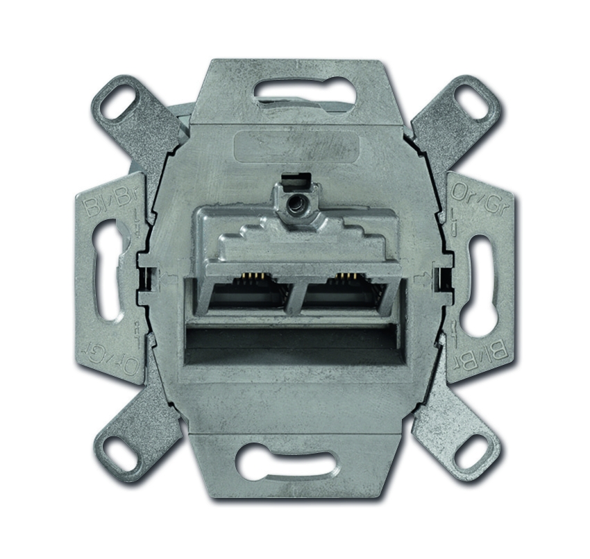 Zum Anschluss von analogen oder digitalen Endgeräten über zwei 8-polige UAE-Buchsen. Mit Schraubbefestigung. Anschluss über LSA-Klemmen. RJ45-Universal-Anschlussdosen für Netzwerke nachCat.6A, Class EA (10 Gbit/s / 500 MHz). Entspricht Cat. 6A gem. ISO/IEC 11801:2011-06 und DIN EN 50173-1:2011-09. GHMT zertifiziertxx Geeignet für PoE+ gemäß IEEE 802.3atxx Steckzyklen >/ 1000. Variable Kabelzuführung. RJ 11/12 fehlstecksicher. Zu komplettieren mit: Zentralplatte für UAE-Einsatz, 2fach System M 2961xx, 2980xx, System Design MEG4522-60xx, System Fläche 2926xx.""
