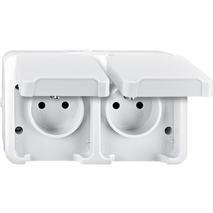 Merten Doppelsteckdose mit Schutzkontaktstift und Berührungsschutz, polarweiß, AQUASTAR MEG2520-8019