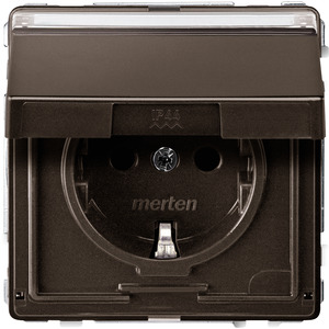 Merten SCHUKO-Steckdose mit Klappdeckel und Schriftfeld, Berührungsschutz, Steckklemmen, dunkelbrasil, AQUADESIGN MEG2312-7215