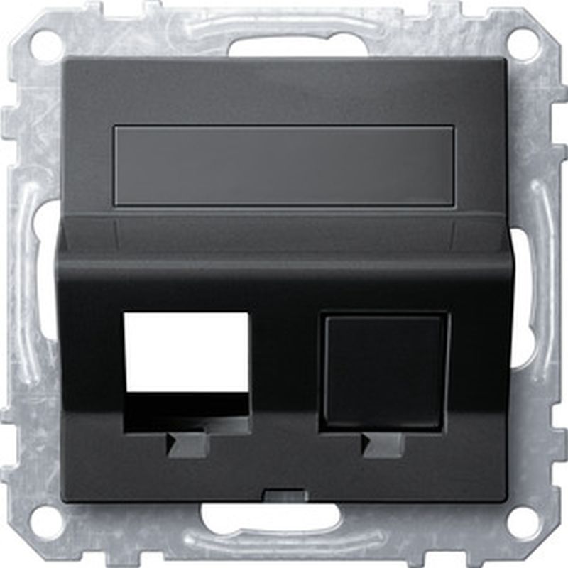Merten Schr_gauslass 2fach mit Tragring und Schriftfeld fŸr Modular Jack, anthrazit, System M MEG4568-0414