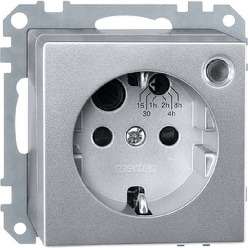 Integrierter erh_hter BerŸhrungsschutz gem_§ VDE 0620 Teil 1. Bedienbar Ÿber einen Taster an der Steckdose oder mit einem Nebenstellentaster. Steckdose schaltet nach einer voreinstellbaren Zeit ab. Abschalten vor Ablauf der Zeit m_glich. Mit Schraubbefestigung. Mit Schraubklemmen. Zeiteinstellung: stufig einstellbar, 15 min, 30 min, 1 h, 2 h, 4 h, 8 h. Feinschutz: Elektronischer †berlast-/ Temperaturschutz. Sicherung: 8 A. Anzeigeelemente: grŸne LED fŸr Zustandsanzeige. Nebenstellenbetrieb: Nebenstellen-Einsatz 573999. Nebenstellen-TELE-Einsatz 573998. Adapter: Adapter System M 5184xx Hinweis: Fl_chenbŸndiger Einbau bei Installation in 60er Installationsdose m_glich. Lieferumfang: Mit 2 Schrauben zur Befestigung auf der Installationsdose. Material Thermoplast edelmatt. Farbe aluminium.