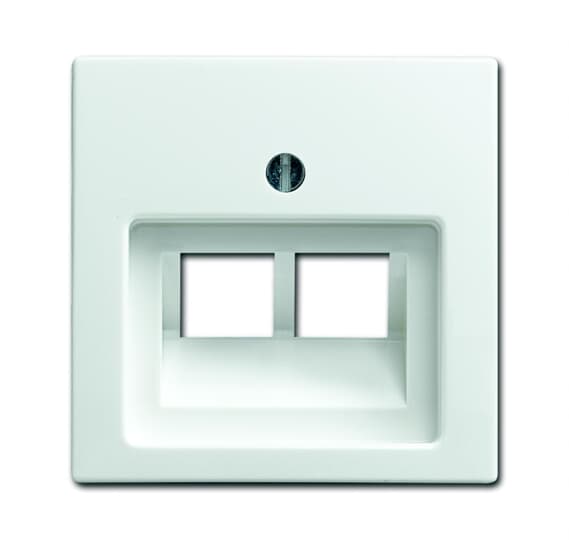 Zentralscheibe, alpinwei§, Busch-balance SI, Abdeckungen fŸr Datenkommunikation, Zentralscheibe 2-fach Als Abdeckung fŸr UAE-Anschlussdosen. Art.-Nr. 0214, 0215 (Kategorie 3/ISDN), 0217-xxx, 0218-xxx, 0218/12-xxx (Kategorie 5e/Cat. 6 A ISO/Datentechnik) und vergleichbare Typen der Fa. Rutenbeck. Brand-Rex (WAEGV 8/8 EKR/EK). AMP (NETCONNECT 5E). BTR (E-DAT C6, E-DAT design, UAE design und IAE design). cti (cti-wire 2.8 Cat.6). Teleg_rtner (AMJ 45, UMJ 45). Mit Schr_gauslass.
