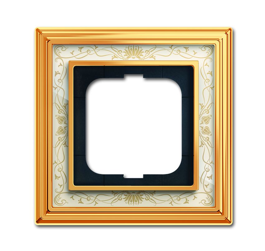 B+J Abdeckrahmen, Messing poliert Dekor elfenbeinwei§, Busch-dynasty, Rahmen Busch-dynasty 1721-836