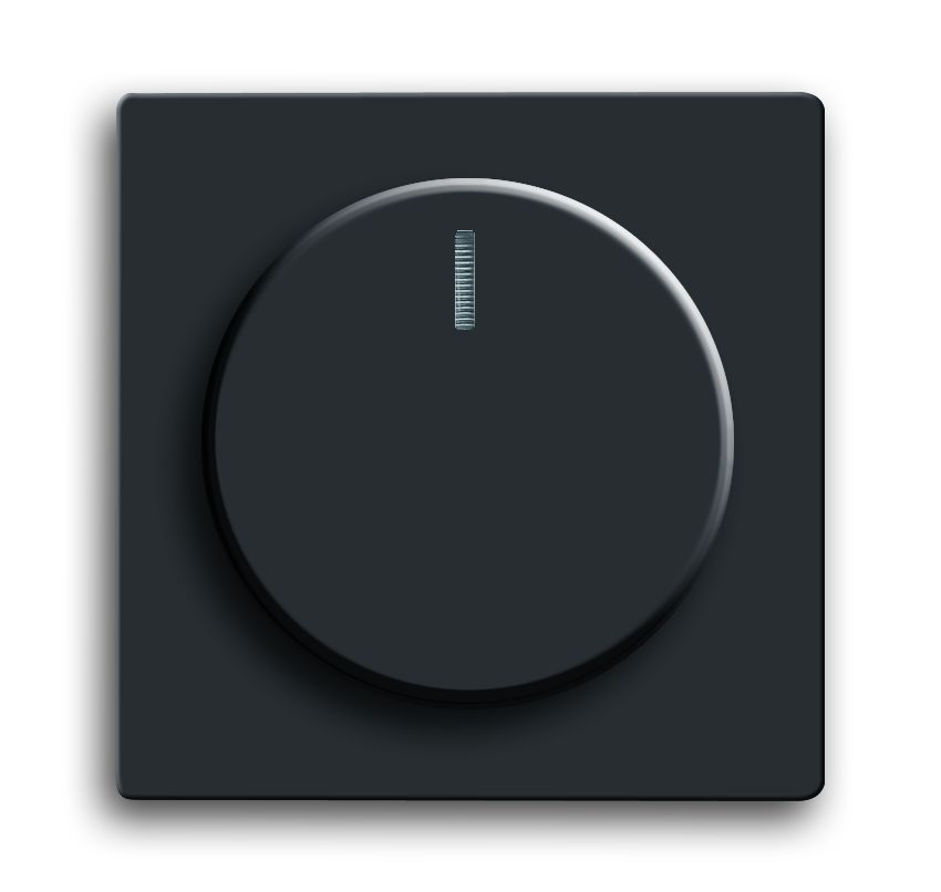 Zentralscheibe, schwarz matt, future linear, Bedienelemente für Dimmer, Zentralscheibe mit Drehknopf, Bef.-Mutter und Glimmlampe Erhöhte Bauform. Mit transparentem Leuchtring. Für Busch-Dimmer. Für Einsatz 2112 U-101/2247 U/2250 U/6513 U-102/6517 U-10x/6519 U/6520 U/6523 U(R)(10x) /6591 U-10x und 6592 U.