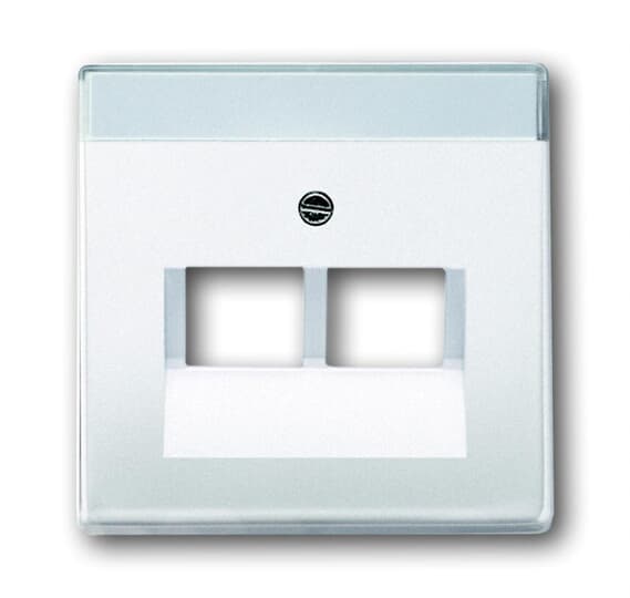 Zentralscheibe, studioweiß, carat, Abdeckungen für Datenkommunikation, Zentralscheibe 2-fach Als Abdeckung für UAE-Anschlussdosen. Art.-Nr. 0214, 0215 (Kategorie 3/ISDN), 0217-xxx, 0218-xxx, 0218/12-xxx (Kategorie 5e/Cat. 6 A ISO/Datentechnik) und vergleichbare Typen der Fa. Rutenbeck. Brand-Rex (WAEGV 8/8 EKR/EK). AMP (NETCONNECT 5E). BTR (E-DAT C6, E-DAT design, UAE design und IAE design). cti (cti-wire 2.8 Cat.6). Telegärtner (AMJ 45, UMJ 45). Mit Schrägauslass. Mit Beschriftungsfeld. Größe des Beschriftungsfeldes: 60 x 9 mm.