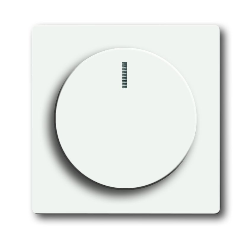 Zentralscheibe, studioweiß matt, future linear, Bedienelemente für Dimmer, Zentralscheibe mit Drehknopf, Bef.-Mutter und Glimmlampe Erhöhte Bauform. Mit transparentem Leuchtring. Für Busch-Dimmer. Für Einsatz 2112 U-101/2247 U/2250 U/6513 U-102/6517 U-10x/6519 U/6520 U/6523 U(R)(10x) /6591 U-10x und 6592 U.