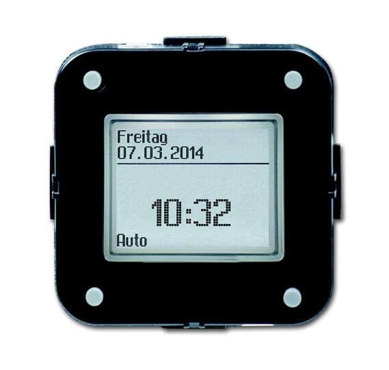 Standard-Timer-Bedienelement, Zeitschaltuhren, Busch-Timer, Standard-Timer-Bedienelement FŸr manuelles und zeitgesteuertes Schalten von Rolll_den und Jalousien. Mit Astroprogramm. Individuelle Astroverschiebung und Astrosperrzeit. Manuelle Bedienung der Beschattung jederzeit m_glich. Einfache Einstellung Ÿber hochaufl_sendes Display mit Hintergrundbeleuchtung. Schaltzeiten/Datum/Uhrzeit voreingestellt. Ab Werk voreingestellte Schaltzeiten, individuelle Anpassung m_glich. Automatische Sommer-/Winterzeitumstellung (abschaltbar). Schaltzeiten/Programm sind netzausfallsicher gespeichert. Gangreserve fŸr Uhrzeit und Datum > 10 Jahre. Einfache Umschaltung fŸr Hand-/Automatik-/Urlaubsbetrieb. Programmierung nur mit aufgestecktem Bedienelement unter Spannung m_glich. 2 Schaltzeiten pro Tag fŸr jeden Wochentag frei einstellbar. Astro-Schaltzeiten und Schaltzeiten sind kombinierbar. FŸr Jalousie-Basis-Einsatz 6418 U. Temperaturbereich Ger_t: 0 ¡C bis 35 ¡C