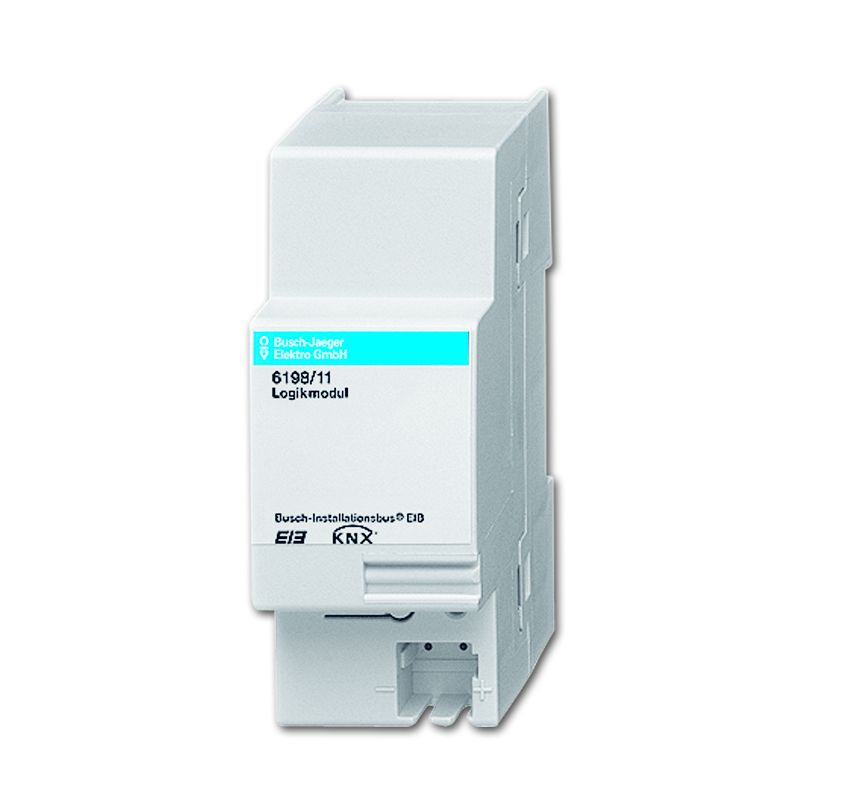 Logikmodul, Busch-Installationsbus KNX, IP-Komponenten, Gateways und Logik, Logikmodul †ber unterschiedliche Applikationen k_nnen logische VerknŸpfungen, Filterfunktionen und Zeitglieder realisiert werden. Die Eingabe der logischen VerknŸpfungen etc. erfolgt mittels grafischer Oberfl_che. Der Busanschluss erfolgt Ÿber die beiliegende Busklemme. AnschlŸsse: KNX-Linie: Busanschlussklemme Temperaturbereich Ger_t: -5 ¡C bis 45 ¡C Ma§e (H x B x T): 90 mm x 36 mm x 64 mm Einbautiefe: 68 mm Teilungseinheit: 2 TE