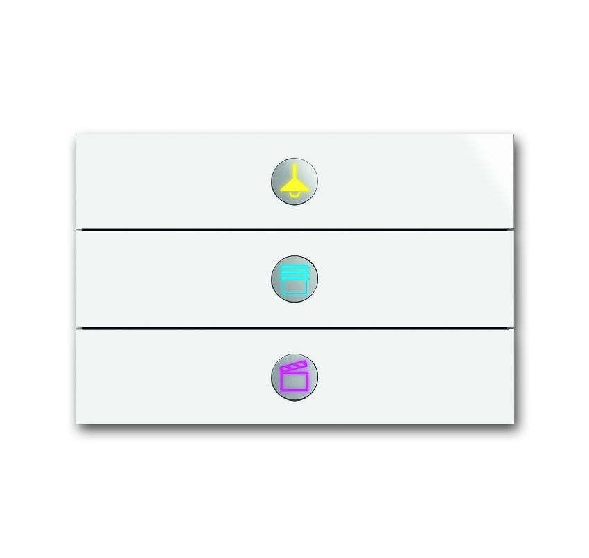 Bedienelement 3-fach, studiowei§, Busch-Powernet KNX, Busch-priOn Bedienelemente, Bedienelement 3-fach Busch-priOn Freiprogrammierbares Muljpgunktionsbedienelement. Zum Einbau in den Grundtr_ger 1-fach, 2-fach und 3-fach (6346/10-101, 6346/11-101 und 6346/12-101). UnterstŸtzung der KNX-Funktionen durch innovatives Farbkonzept (gelb=Beleuchtung, blau=Jalousie, orange=RTR, magenta=Szene und wei§=neutral/keine Funktionszuordnung) oder Standardbeleuchtung rot/grŸn. Beiliegendes Symbol kann durch die Symbole fŸr Beleuchtung (6353/20-xxx), Jalousie (6353/30-xxx), RTR (6353/40-xxx) und Szene (6353/50-xxx) ausgewechselt werden. Zur Einstellung und Steuerung der RTR-Funktionen und Texte der Abschussleiste Display RTR, IR und N_herung (6351/08-825). Temperaturbereich Ger_t: -5 ¡C bis 45 ¡C Ma§e (H x B x T): 71 mm x 106,6 mm x 11 mm