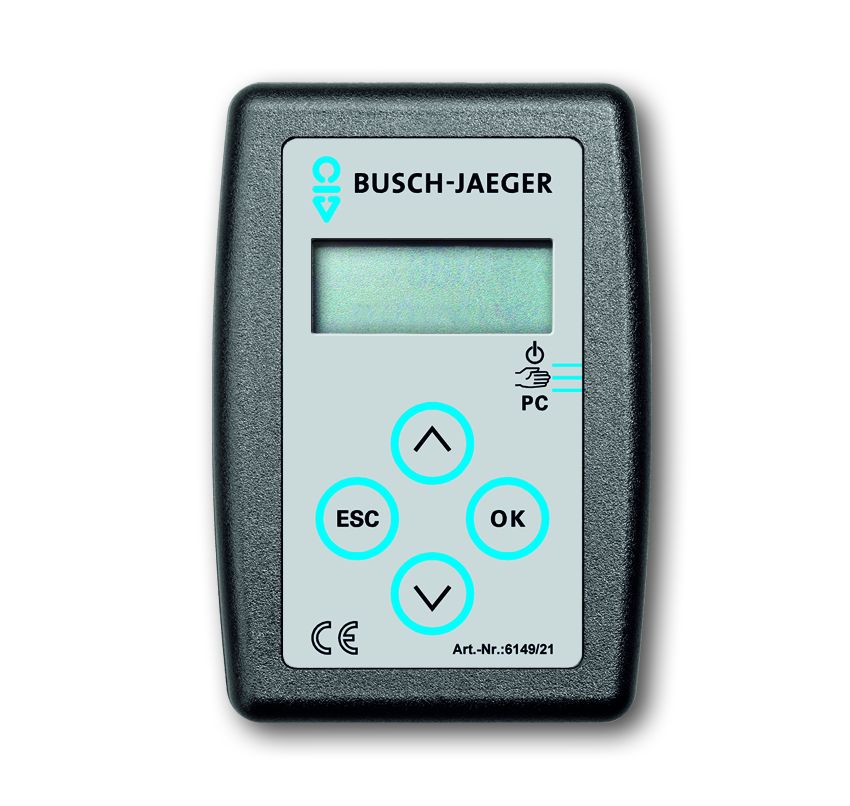 Inbetriebnahmeschnittstelle/-adapter, schwarz, Busch-Powernet KNX, Busch-prion UP-Aktoren/-Netzankoppler, Inbetriebnahmeschnittstelle/-adapter FŸr Busch-Installationsbus KNX Busankoppler 6120/12-101, 6120/13-101, 6197/12-101, 6197/13-101, 6197/14-101, 6197/15-101 und Busch-Powernet KNX Netzankopplung 6920/12, 6920/13, 6920/40. Lokale Inbetriebnahme Ÿber SD-Kartenslot. Auswahl der Daten auf SD-Karte Ÿber 4 Tasten und 3 zeiligen hinterleuchteten Display. Mit integriertem Akku, zum autarkem Betrieb von bis zu 8h. Aufladung erfolgt Ÿber PC mit USB-Kabel. Zur Ankopplung eines PC an den KNX. Bedienelemente: 4 Tasten zur Bedienung Anzeigeelemente: Mehrzeiliges hinterleuchtetes Display Temperaturbereich Ger_t: -5 ¡C bis 45 ¡C