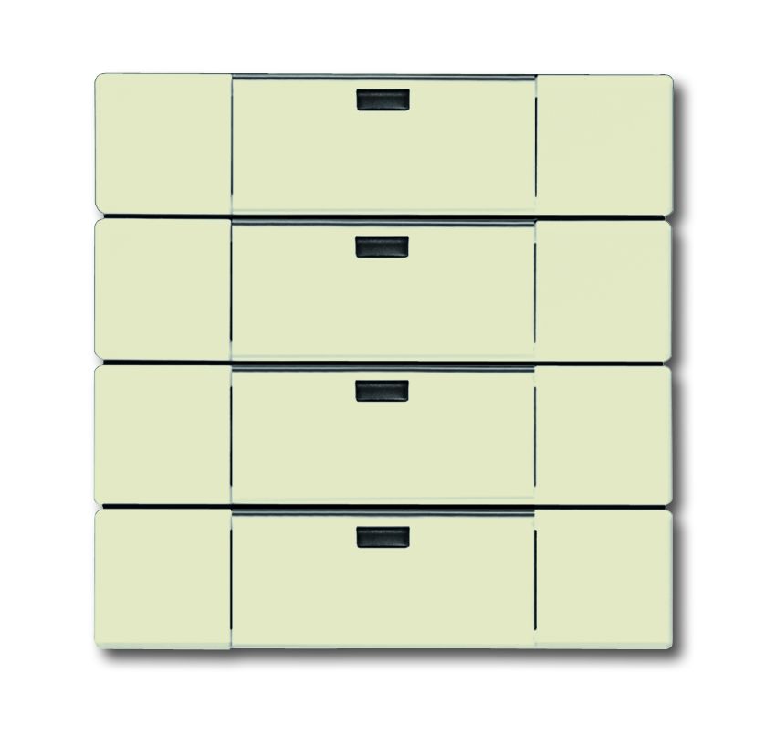 Wandsender WaveLINE, elfenbeinwei§, carat, Bedienelemente Funkcontrol, Wandsender WaveLINE 4 Kanal Netzunabh_ngiger 4-fach Wandsender. Mit Beschriftungsfeld und Beschriftungsschild. Zum Schalten und Dimmen. Zur Jalousie- und zur Lichtszenensteuerung. Es k_nnen 4 Funkkan_le bedient oder bis zu 8 Lichtszenen aufgerufen werden. FŸr WaveLINE UP-Aktoren 6701-101, 6702, 6703, 6704 und 6705-101. FŸr LED-Anzeige WaveLINE 6730-xxx. Kompatibel zu WaveLINE Medienkonverter TP-RF 6770. Sendefrequenz: 868 MHz. Reichweite: ca. 100 m (Freifeld). Spannungsversorgung: Lithium-Knopfzelle Typ CR2032. Batterielebensdauer: typ. 5 Jahre, dadurch praktisch wartungsfrei. Automatische †berwachung der Batterielebensdauer. Inkl. Befestigungsplatte zur Montage auf glatten W_nden oder auf Schalterdosen. Bedienelemente: Tastkontakte links/rechts Anzeigeelemente: Statusanzeige der Sendestufe Ÿber LED Schutzart Ger_t: IP 20 Temperaturbereich Ger_t: -5 ¡C bis 45 ¡C Ma§e (H x B x T): 63 mm x 63 mm x 16 mm