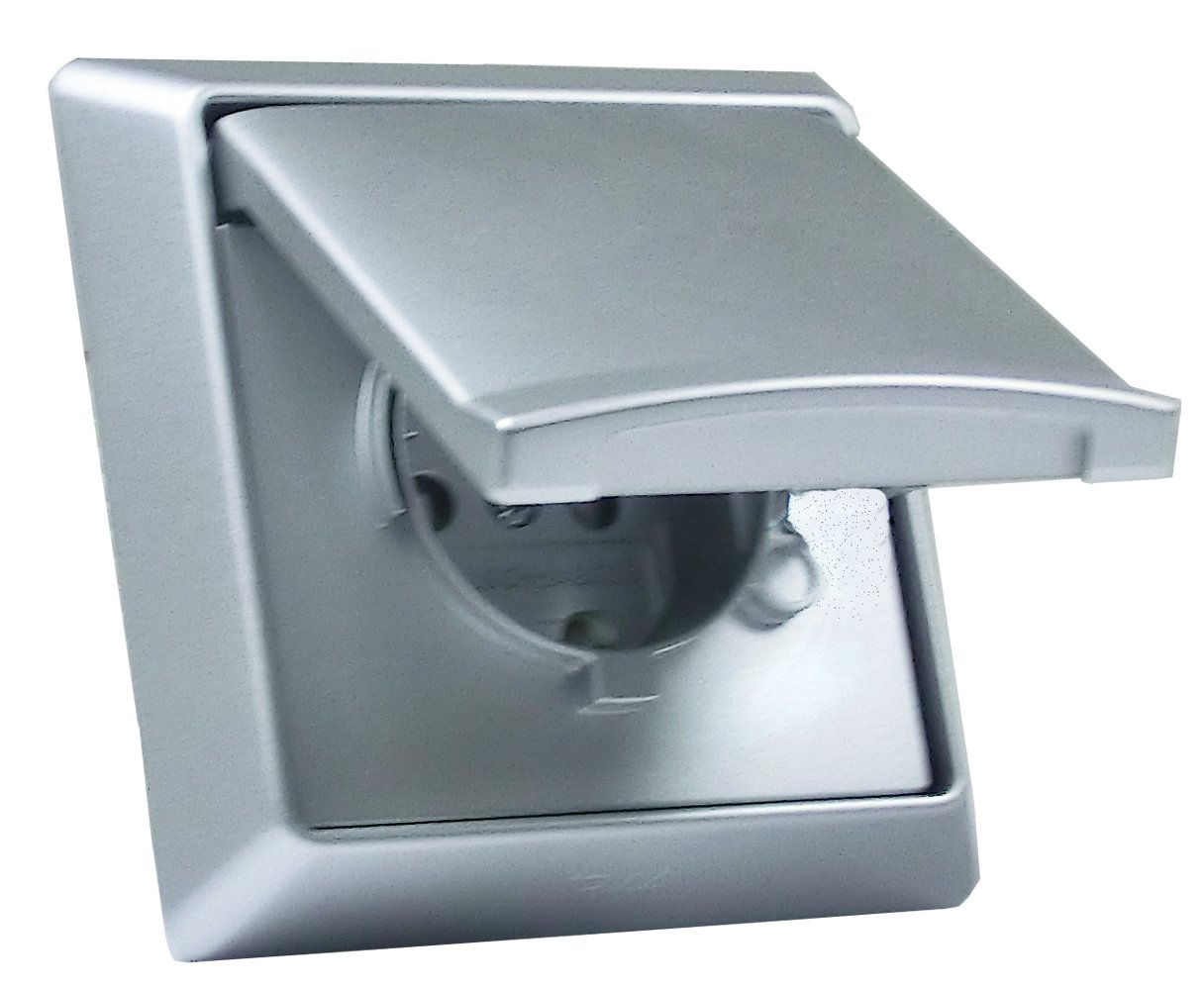 Set besteht aus Steckdose 20EUGK-33-101 und Rahmen 2101-33 in Alu IP44Dieses Programm trotzt mit Schutzart IP 44 Wind wie auch Wetter und tr_gt damit seinen Namen v_llig zu Recht. In der Werkstatt oder auf der Terrasse sind die robusten Ger_te dieser bruchfesten und witterungsbest_ndigen Serie die richtige Wahl. Die Vorteile der Unterputzinstallation und die Anforderungen, die an wassergeschŸtzte Ger_te gestellt werden, sind in dieser Serie vereint. Der Einsatz ist in handelsŸblichen Unterputzdosen m_glich