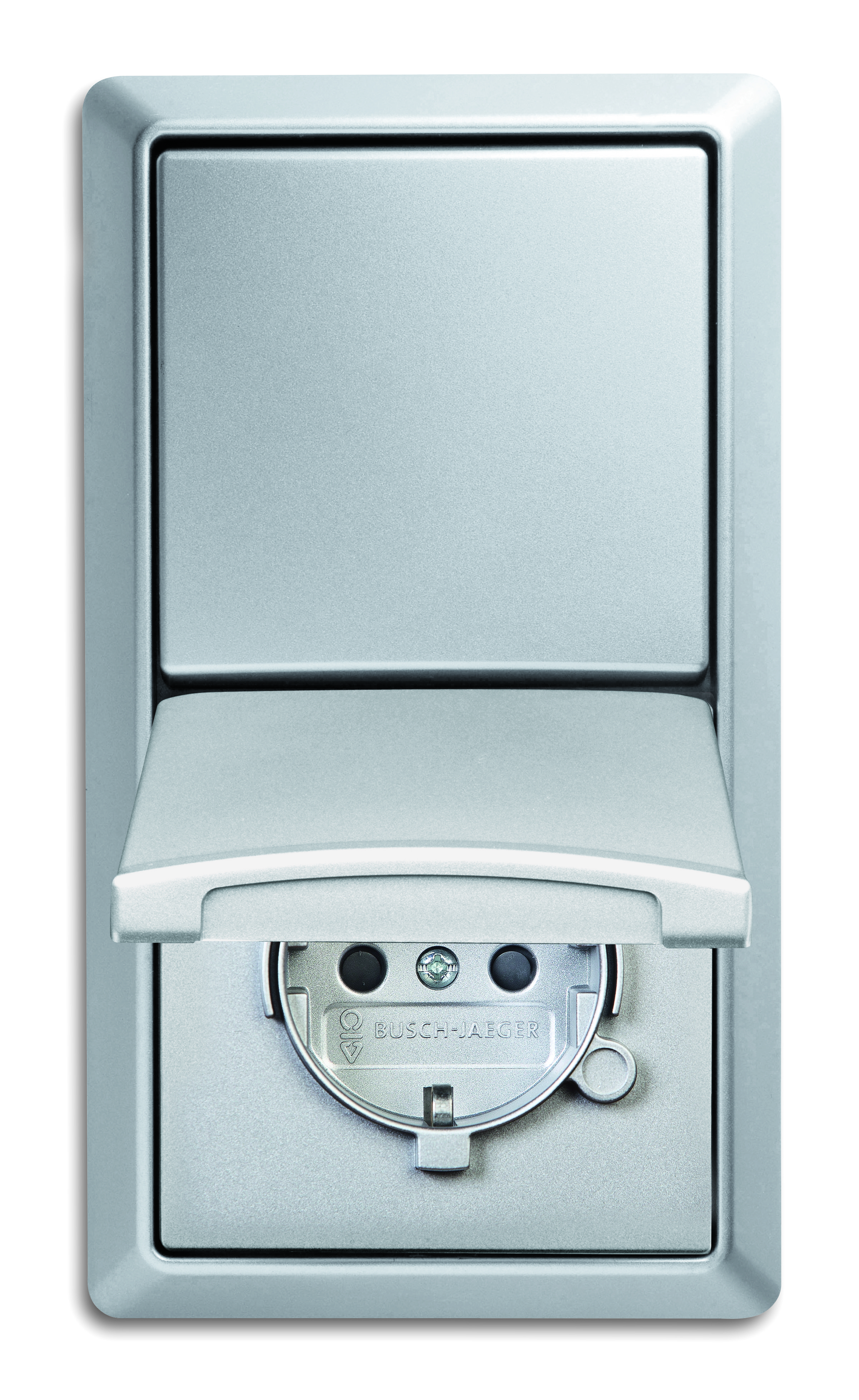 Set besteht aus Steckdose 20EUGK-33-101,Rahmen 2102-33,Wippe 2106-33,Wechselschalter 2000/6US in alu IP44